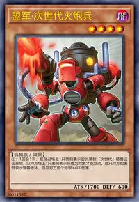 ①:1回合1次,把自己场上1只表侧表示的炎属性「次世代」怪兽送去墓地,以对方场上1只表侧表示怪兽为对象才能发动。那只对方的表侧表示怪兽破坏,给与对方那个等级×400伤害。