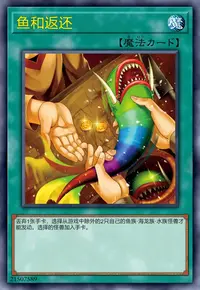 丢弃1张手卡,选择从游戏中除外的2只自己的鱼族·海龙族·水族怪兽才能发动。选择的怪兽加入手卡。