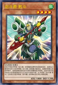 这张卡用名字带有「剑斗兽」的怪兽的效果特殊召唤成功时,选择自己墓地存在的1只名字带有「剑斗兽」的怪兽才能发动。选择的怪兽从游戏中除外,直到结束阶段时当作和那只怪兽同名卡使用。这张卡进行战斗的战斗阶段结束时可以让这张卡回到卡组,从卡组把「剑斗兽 教斗」以外的1只名字带有「剑斗兽」的怪兽在自己场上特殊召唤。
