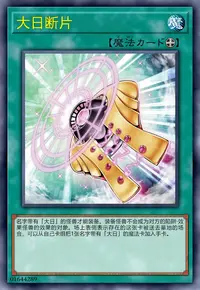 名字带有「大日」的怪兽才能装备。装备怪兽不会成为对方的陷阱·效果怪兽的效果的对象。场上表侧表示存在的这张卡被送去墓地的场合,可以从自己卡组把1张名字带有「大日」的魔法卡加入手卡。