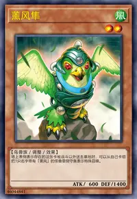 这张卡被卡的效果破坏送去墓地时,可以从自己卡组把1只5星以上的名字带有「薰风」的怪兽特殊召唤。