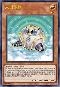 1回合1次,可以选择当作装备卡使用在自己场上存在的1张名字带有「大日」的怪兽卡表侧守备表示特殊召唤。这个效果特殊召唤的怪兽从场上离开的场合从游戏中除外。