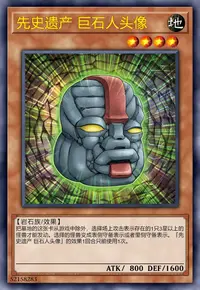 把墓地的这张卡从游戏中除外,选择场上攻击表示存在的1只3星以上的怪兽才能发动。选择的怪兽变成表侧守备表示或者里侧守备表示。「先史遗产 巨石人头像」的效果1回合只能使用1次。