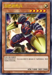 这张卡召唤成功时,可以从自己的手卡·墓地选1只「加把劲枪兵」表侧守备表示特殊召唤。