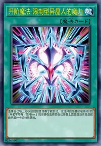 选择自己场上1只4阶的超量怪兽才能发动。比选择的怪兽阶级高1阶的1只名字带有「混沌No.」的怪兽在选择的自己怪兽上面重叠当作超量召唤从额外卡组特殊召唤。