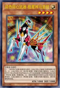 ①:「异热同心武器-极星神马圣铠」在自己场上只能有1张表侧表示存在。