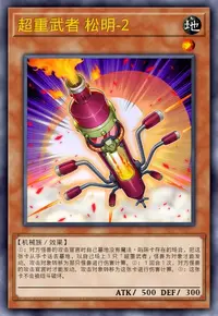 ①:对方怪兽的攻击宣言时自己墓地没有魔法·陷阱卡存在的场合,把这张卡从手卡送去墓地,以自己场上1只「超重武者」怪兽为对象才能发动。攻击对象转移为那只怪兽进行伤害计算。