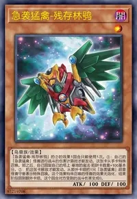 ①:把自己场上1只表侧表示的鸟兽族怪兽解放才能发动。和解放的怪兽相同等级的1只鸟兽族怪兽从卡组特殊召唤。