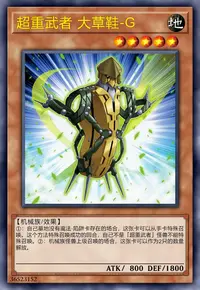 ①:自己场上没有「超重武者」怪兽以外的怪兽存在,自己墓地没有魔法·陷阱卡存在的场合,以对方场上1只表侧表示怪兽为对象才能发动。那只怪兽和这张卡从场上送去墓地。那之后,把持有和送去墓地的那2只怪兽的原本等级合计相同等级的1只「超重武者」同调怪兽从额外卡组当作同调召唤作特殊召唤。
