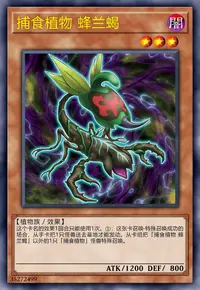 ①:这张卡召唤·特殊召唤成功的场合,从手卡把1只怪兽送去墓地才能发动。从卡组把「捕食植物 蜂兰蝎」以外的1只「捕食植物」怪兽特殊召唤。