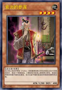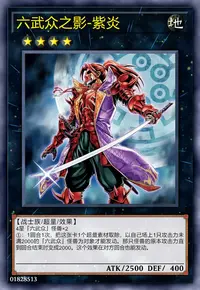 ②:把有武士道指示物放置的这张卡送去墓地才能发动。把持有这张卡放置的武士道指示物数量以下的等级的1只「六武众」效果怪兽或者「紫炎」效果怪兽从卡组特殊召唤。