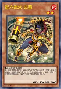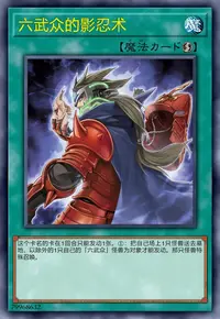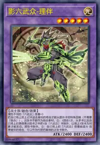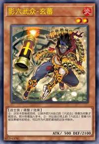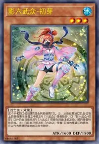 ①:从自己墓地以及自己场上的表侧表示怪兽之中把2只「六武众」怪兽除外,以「影六武众-初芽」以外的自己墓地1只「六武众」怪兽为对象才能发动。那只怪兽特殊召唤。