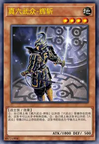 ①:自己场上有「真六武众-辉斩」以外的「六武众」怪兽存在的场合,这张卡可以从手卡特殊召唤。