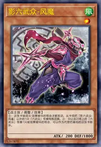 ①:这张卡被战斗·效果破坏的场合才能发动。从卡组把「影六武众-风魔」以外的1只「六武众」怪兽特殊召唤。