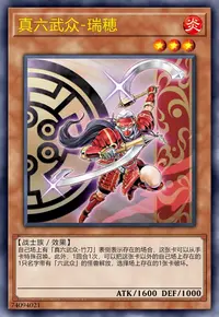 自己场上有「真六武众-瑞穂」表侧表示存在的场合,这张卡可以从手卡特殊召唤。场上存在的这张卡被解放的场合,选择自己墓地存在的「真六武众-竹刀」以外的1只名字带有「六武众」的怪兽加入手卡。