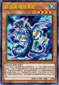 ①:这张卡召唤·特殊召唤的场合,以除「科技属 螺旋桨蛇」外的自己墓地1只4星以下的「科技属」怪兽为对象才能发动。那只怪兽特殊召唤。这个效果特殊召唤的怪兽的效果无效化。