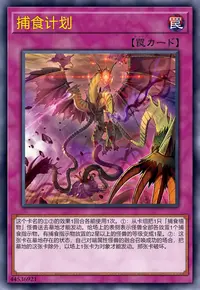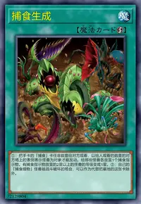 ①:从手卡把1只「捕食植物」怪兽特殊召唤。那之后,从卡组把「捕食活动」以外的1张「捕食」卡加入手卡。这张卡的发动后,直到回合结束时自己不是融合怪兽不能从额外卡组特殊召唤。