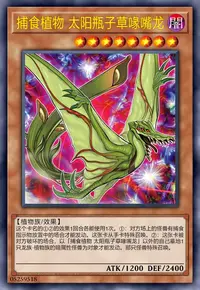 ②:这张卡被对方破坏的场合,以「捕食植物 太阳瓶子草喙嘴龙」以外的自己墓地1只龙族·植物族的暗属性怪兽为对象才能发动。那只怪兽特殊召唤。