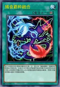 ①:场上有「捕食植物」怪兽存在的场合才能发动。从自己·对方场上把暗属性融合怪兽卡决定的包含自己场上的暗属性怪兽2只以上在内的融合素材怪兽送去墓地,把那1只融合怪兽从额外卡组融合召唤。