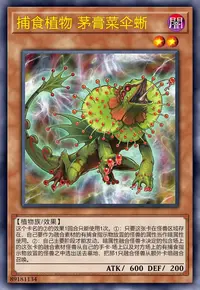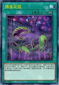 ①:1回合1次,自己主要阶段才能发动。从自己的手卡·墓地选1只4星以下的「捕食植物」怪兽特殊召唤。这个效果特殊召唤的怪兽的效果无效化。