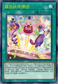 ①:自己场上有「娱乐伙伴」怪兽灵摆召唤的场合发动。自己场上的全部「娱乐伙伴」怪兽的攻击力直到回合结束时上升1000。