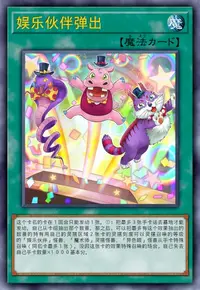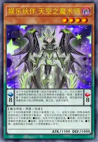 ①:把最多3张手卡送去墓地才能发动。自己从卡组抽出那个数量。那之后,可以把最多有这个效果抽出的数量的持有用自己的灵摆区域2张卡的灵摆刻度可以灵摆召唤的等级的「娱乐伙伴」怪兽、「魔术师」灵摆怪兽、「异色眼」怪兽从手卡特殊召唤(同名卡最多1张)。没因这张卡的效果特殊召唤的场合,自己失去自己手卡数量×1000基本分。