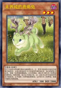 ①:把手卡的这张卡给对方观看才能发动。从自己的全部手卡之中由对方随机选1张,自己把那张卡丢弃。那是「未界域的鹿角兔」以外的场合,再从手卡把1只「未界域的鹿角兔」特殊召唤,自己从卡组抽1张。
