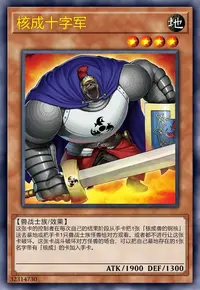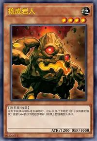 选择自己墓地存在的1只名字带有「核成」的怪兽,攻击表示特殊召唤。自己的结束阶段时那只怪兽被破坏时,这张卡的控制者受到那只怪兽的攻击力数值的伤害。这张卡不在场上存在时,那只怪兽破坏。那只怪兽破坏时这张卡破坏。