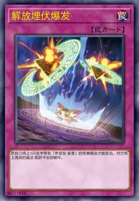 把自己场上1只名字带有「希望皇 霍普」的怪兽解放才能发动。对方场上盖放的魔法·陷阱卡全部破坏。