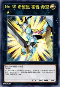 把自己场上1只超量怪兽解放才能发动。这个回合的结束阶段时,和解放的怪兽相同种族而阶级低1阶的1只名字带有「No.」的怪兽从额外卡组特殊召唤。