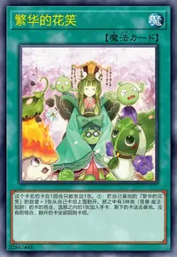 ①:把自己墓地的「繁华的花笑」的数量+3张从自己卡组上面翻开。那之中有3种类(怪兽·魔法·陷阱)的卡的场合,选那之内的1张加入手卡,剩下的卡送去墓地。没有的场合,翻开的卡全部回到卡组。