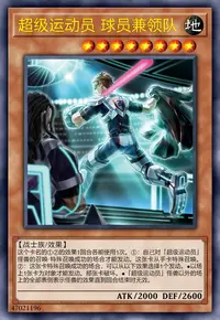 ①:自己的「超级运动员」怪兽或者「方程式运动员」怪兽去用战斗破坏对方怪兽的伤害计算后或者去给与对方战斗伤害时才能发动。从自己的手卡·墓地选「超级运动员」怪兽以及「方程式运动员」怪兽任意数量守备表示特殊召唤(同名卡最多1张)。