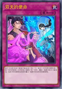 ①:自己·对方的主要阶段,把「双天的使命」以外的自己墓地1张「双天」魔法·陷阱卡除外才能发动。这张卡的效果变成和那张魔法·陷阱卡发动时的效果相同。