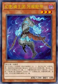 ②:把墓地的这张卡除外才能发动。从手卡把「幻影骑士团 污痕胫甲」以外的1只「幻影骑士团」怪兽特殊召唤。那之后,可以让那只怪兽的等级上升1星。