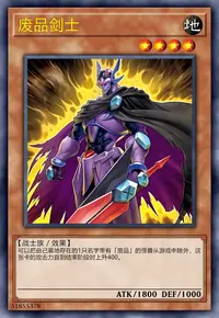 可以把自己墓地存在的1只名字带有「废品」的怪兽从游戏中除外,这张卡的攻击力直到结束阶段时上升400。