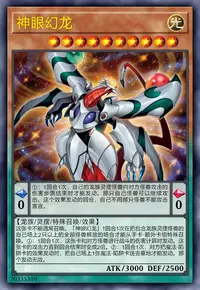 这张卡不能通常召唤。「神眼幻龙」1回合1次在把包含龙族灵摆怪兽的自己场上2只以上的全部怪兽解放的场合才能从手卡·额外卡组特殊召唤。