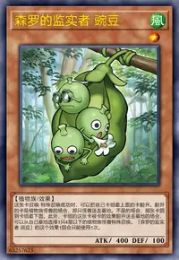 这张卡召唤·特殊召唤成功时,可以把自己卡组最上面的卡翻开。翻开的卡是植物族怪兽的场合,那只怪兽送去墓地。不是的场合,那张卡回到卡组最下面。此外,卡组的这张卡被卡的效果翻开送去墓地的场合,可以从自己墓地选择1只4星以下的植物族怪兽特殊召唤。「森罗的监实者 豌豆」的这个效果1回合只能使用1次。