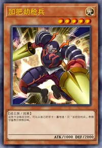 这张卡召唤成功时,可以从自己的手卡·墓地选1只「加把劲枪兵」表侧守备表示特殊召唤。