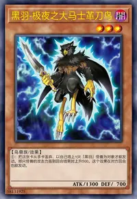 ①:把这张卡从手卡丢弃,以自己场上1只「黑羽」怪兽为对象才能发动。那只怪兽的攻击力直到回合结束时上升500。这个效果在对方回合也能发动。