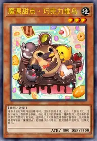 这张卡被对方破坏送去墓地时,这张卡回到卡组。此外,1回合1次,这张卡在场上表侧表示存在,自己场上的名字带有「魔偶甜点」的怪兽的表示形式变更时才能发动。选择场上1只怪兽变成表侧守备表示,那只怪兽是名字带有「魔偶甜点」的怪兽以外的场合,那只怪兽不能攻击,效果无效化。