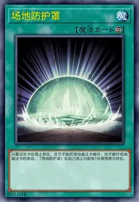 只要这张卡在场上存在,双方不能把场地魔法卡破坏,也不能作场地魔法卡的发动。「场地防护罩」在自己场上只能有1张表侧表示存在。