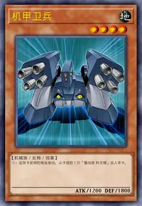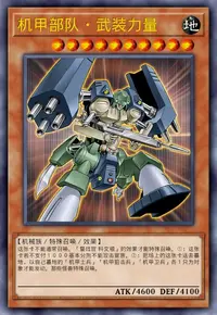 ①:把自己场上的表侧表示的「机甲士兵」「机甲狙击兵」「机甲卫兵」各1只送去墓地才能发动。从手卡·卡组把1只「机甲部队·武装力量」特殊召唤。