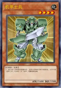①:自己场上没有其他怪兽存在,这张卡召唤成功时才能发动。从手卡把「机甲士兵」以外的1只「机甲」怪兽特殊召唤。