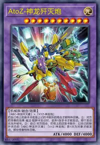 ②:自己·对方回合,把场上的这张卡除外,以自己的除外状态的「ABC-神龙歼灭者」「XYZ-神龙炮」各1只为对象才能发动。那些怪兽特殊召唤。