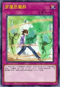 ①:把自己场上1只怪兽解放才能发动。在对方场上把3只「梦魇恶魔衍生物」(恶魔族·暗·6星·攻/守2000)攻击表示特殊召唤。「梦魇恶魔衍生物」被破坏时那控制者受到每1只800伤害。