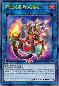 ●以用和自身同名的怪兽为素材作连接召唤的自己场上1只「转生炎兽」连接怪兽为对象才能发动。选最多有那只怪兽的连接标记数量的对方场上的卡破坏。