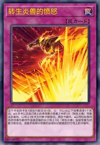 ●从手卡以及自己场上的表侧表示怪兽之中把1只「转生炎兽」怪兽送去墓地,以场上1张卡为对象才能发动。那张卡破坏。