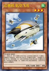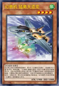 自己场上有衍生物特殊召唤时,把1只「幻兽机衍生物」(机械族·风·3星·攻/守0)特殊召唤。「幻兽机 猛禽大盗龙」的这个效果1回合只能使用1次。这张卡的等级上升自己场上的「幻兽机衍生物」的等级的合计数值。只要自己场上有衍生物存在,这张卡不会被战斗以及效果破坏。此外,1回合1次,把1只衍生物解放才能发动。从卡组把1只名字带有「幻兽机」的怪兽加入手卡。