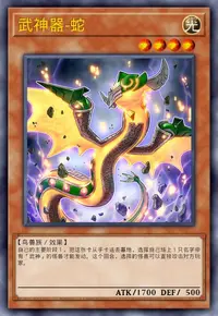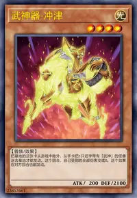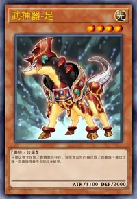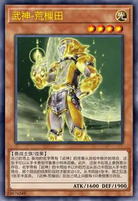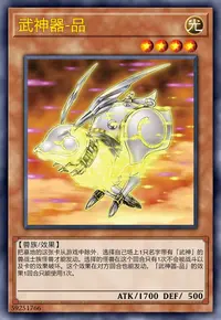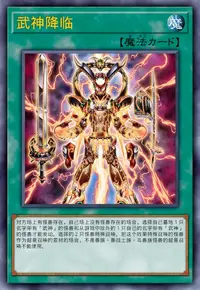 ①:自己场上的兽战士族「武神」怪兽被战斗破坏送去墓地时,把这张卡从手卡送去墓地才能发动。从卡组把1只「武神」怪兽特殊召唤。