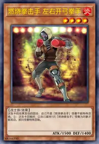 ①:这张卡召唤时才能发动。从卡组把1只「燃烧拳击手」怪兽送去墓地。